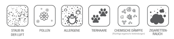 Entfernt 99,995% der Schadstoffe aus der Luft (H14 HEPA Filtrationstechnologie)